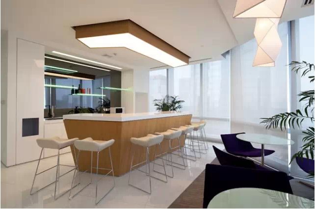 辦公室由不規(guī)則多邊形元素組成,以米色,白色等淺色調(diào)為主,設(shè)計風格體現(xiàn)超立體空間。