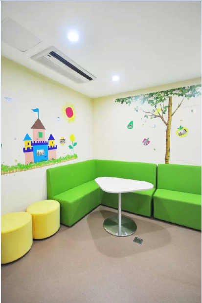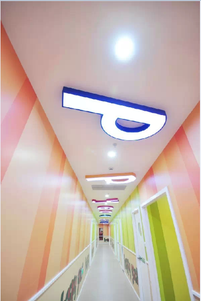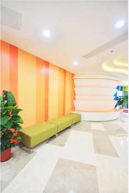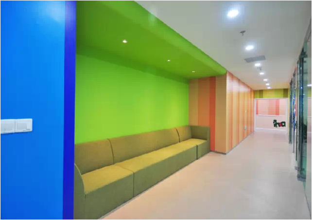黃、綠、藍(lán)是整個(gè)空間的主題色,墻面大部分通過(guò)這三種明亮顏色的漸變組合,帶來(lái)了新鮮活力。