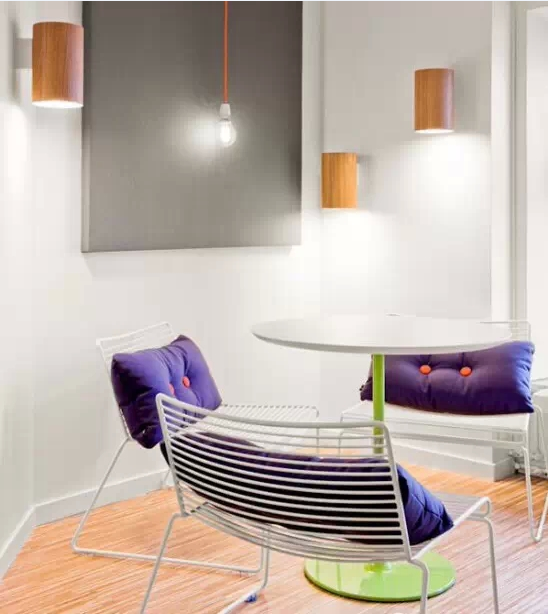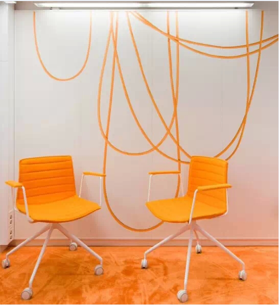整個空間用幾何圖形、實(shí)物線條、豐富的色彩和造型家具塑造出一個獨(dú)特、個性十足的現(xiàn)代化辦公環(huán)境 充滿繽紛的色彩和現(xiàn)代家具。在墻壁的白色背景下,用電線電纜、耳機(jī)等通訊設(shè)備