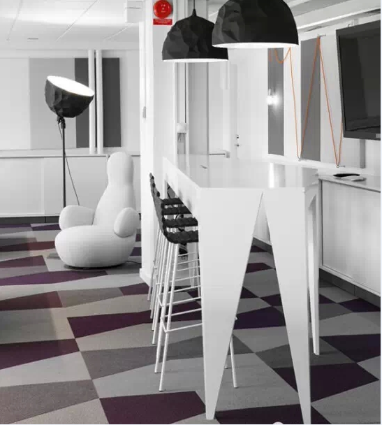 辦公室地板上拼接出的幾何圖案和電線電纜勾畫出的優(yōu)美線條,再配以造型家具生動地傳達(dá)出作為一個