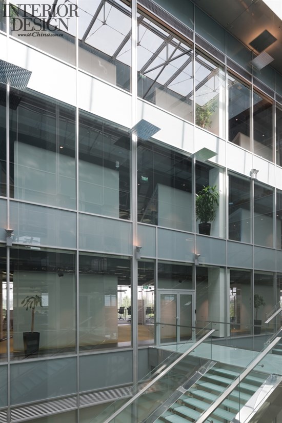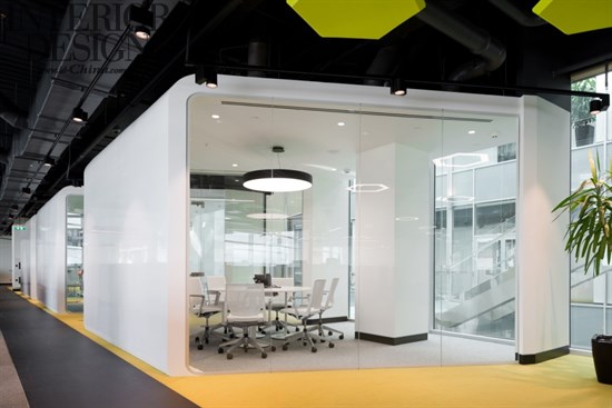 當思索設(shè)計理念的時候,建筑師們受到阿迪達斯公司風格和標識的指引。這產(chǎn)生了基本的顏色和組合的形式——黑白色并帶有亮麗的色彩。三層辦公空間規(guī)劃運用了不同的顏色來裝飾,有橙色、綠色和藍色,有助于在每一個樓層創(chuàng)建一種特定的氣氛。當進行內(nèi)部設(shè)計的時候,建筑師試圖反映Adidas的標志。在同一個地方的每一個樓層都有白色的會議室,從中庭看去就像三條標志性的條紋。三間會議室都被設(shè)置在角落里,黑色和白色顯而易見。