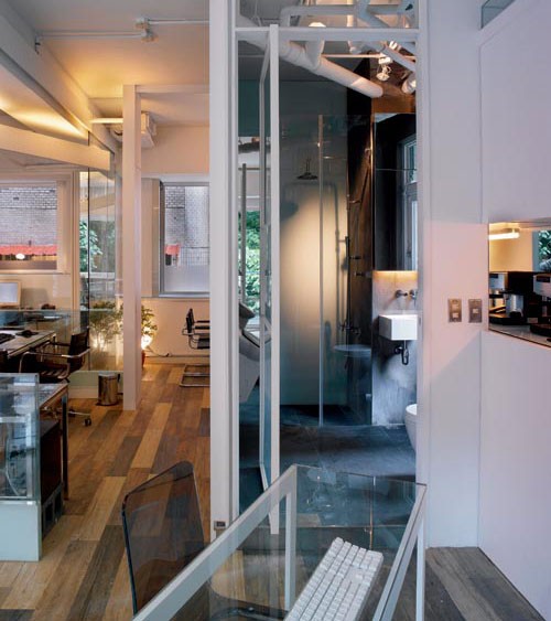機(jī)能應(yīng)變的設(shè)計(jì)是TBDC辦公室設(shè)計(jì)的重點(diǎn)考慮之一,會(huì)談區(qū)的工作桌便是符合需求衍生的產(chǎn)物,L形的討論桌面可依人數(shù)延長(zhǎng),延長(zhǎng)后的視覺(jué)效果并不會(huì)讓人看來(lái)是個(gè)活動(dòng)的桌面,桌面上嵌入了一部MAC MINI,透過(guò)天花板上的設(shè)備投影至前方的特殊玻璃上,無(wú)論在機(jī)能上或視覺(jué)上都產(chǎn)生出豐富多樣的效果。